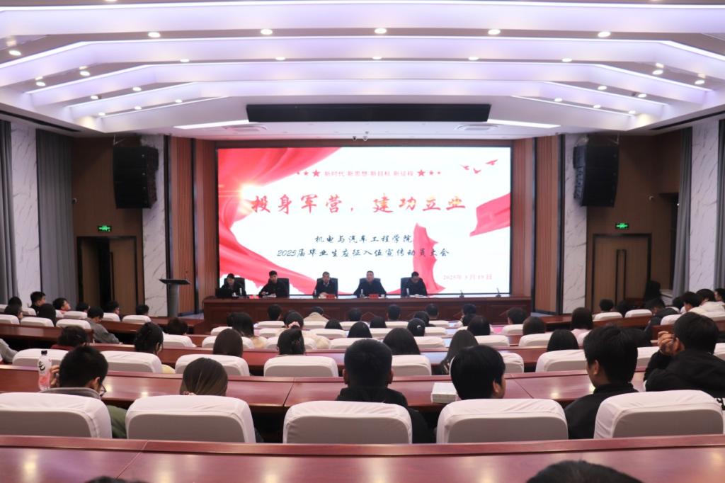 为鼓励毕业生积极响应国家号召,投身国防事业,为实现强军目标贡献青春力量,3月19日晚上公司在四号报告厅举行以“投身军营,建功立业”为主题的应征入伍宣传动员大会。公司党委书记温志贤、副书记范学智、辅导员及2025届在校毕业生近200人参加。
