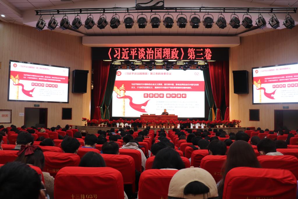 在两个多小时的宣讲报告会上,王文东紧密围绕“学什么?为什么学?怎么学”,分《习近平谈治国理政》第三卷的主要内容、《习近平谈治国理政》第三卷的重要意义、如何学习《习近平谈治国理政》第三卷和深刻领会习近平新时代中国特色社会主义思想的精髓要义四个部分,生动阐释了《习近平谈治国理政》第三卷的核心要义、重要内涵和内在逻辑。报告层次分明、通俗易懂,有思想、有深度、为体育平台官网师生上了一堂精彩的政治理论课。