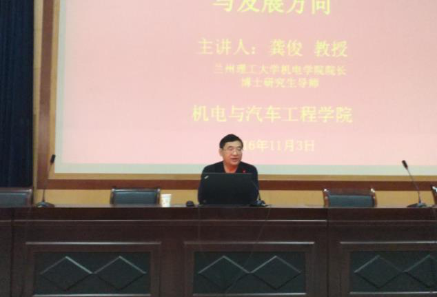 2016年11月3日下午,应公司科研处和体育平台官网邀请,兰州理工大学体育平台官网经理、博士研究生导师龚俊教授来校,在二号报告厅作了题为《机器人的国内外研究现状与发展方向》的学术报告。