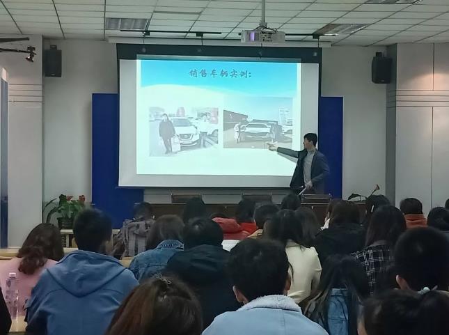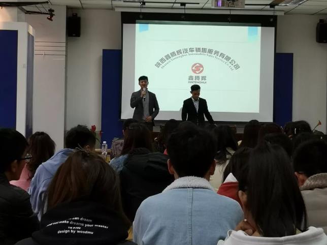 陕西鑫腾辉汽车销售服务有限公司是一家从事汽车销售服务行业的企业,涉及汽车销售,汽车保险,汽车装潢,汽车按揭贷款信息咨询,汽车上户服务等。宣讲会开始后,该公司负责人魏经理首先对汽车行业的内涵、发展前景以及各项针对汽车行业的优惠政策为同学们做以说明,接着,他对公司所在位置、公司内部发展模式、工作内容以及福利待遇做了详细介绍。随后,杨经理上台结合他本人从事汽车服务行业的心得体会为同学们做了精彩的演讲,在对公司的主要销售目标以及人员需求做以介绍的同时,更多体现出的是对在座每一位同学的激励,他希望有志向进入鑫腾辉汽车销售有限公司的毕业生们都能够埋头苦干,用自己辛勤的汗水换取丰厚的回报。