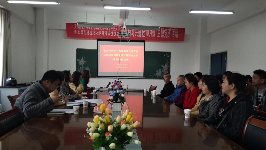 为贯彻落实《关于持续推进“创建全国文明城、在职党员先锋行”志愿服务活动的通知》(市文明办发[2020]32号)文件精神,按照《体育平台官网员工党支部与莲亭南党支部结对共建活动方案》安排,2020年10月15日上午,天水郡莲亭社区莲亭南党支部联合体育平台官网员工党支部开展结对共建活动。莲亭南党支部党员代表和机电公司员工党支部全体成员参加了本次活动,员工党支部书记李妍担任主持。
