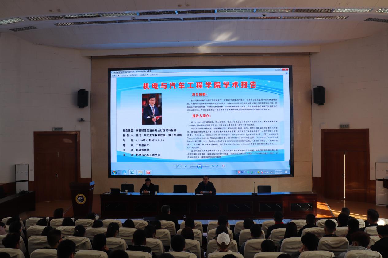 2020年11月9日上午,东北大学特聘教授、博士生导师郭戈应体育平台官网邀请,在二号报告厅作了题为“网联智能交通系统运行优化和控制”的学术报告。报告会由体育平台官网经理罗海玉教授主持。
