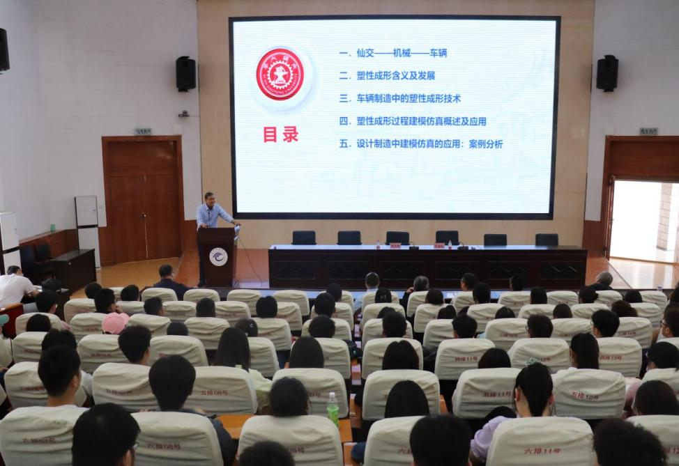 张大伟以“仙交—机械—车辆”引出主题,从塑性成形含义及发展讲起,介绍了金属塑性变形的本质及涉及的核心问题,并结合车辆制造中典型塑性成形技术问题,概述了建模仿真技术在金属塑性成形研究与发展及智能制造中的作用,阐述了金属塑性变形的主要分析内容与常用的解析和数值分析方法,讲解了钛合金大型构件模锻成形工艺、复杂型面滚轧成形的有限元建模分析要点及仿真结果分析。最后,张教授以电梯轿顶轮设计与制造过程为例,介绍了设计与制造过程中建模仿真技术的应用。张教授的报告既有理论深度,又有应用广度,既有学术价值,又有工程指导意义,深入浅出、通俗易懂,是集知识性、科普性、学术性、实践性于一体的精彩报告。
