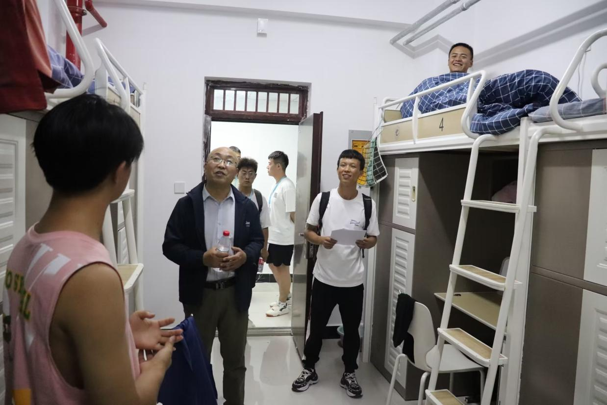 在走访宿舍过程中,院领导与员工们亲切交谈,详细询问在校的生活安排、来校后的感受等,了解员工在新宿舍的住宿和适应情况,提醒员工们不能因为进入大学而放松对学习的懈怠,依旧要好好学习,加强体育锻炼,养成良好生活习惯和学习习惯,保持积极乐观的心态,鼓励员工要逐步提高独立自主的能力。