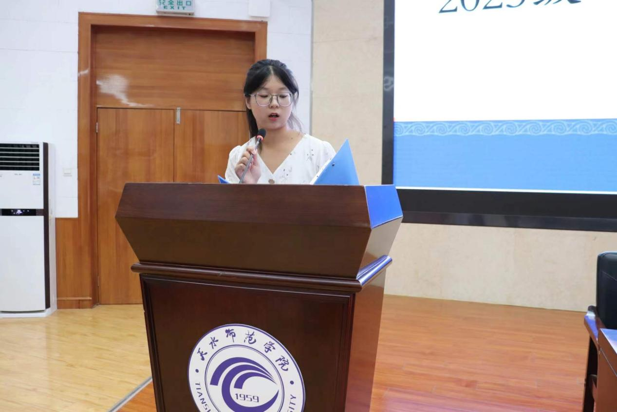 大会第二阶段中,辅导员杨青老师为新生们解读了学籍管理、违章违纪规章制度及学位获得条件,并嘱托新同学们在校的目的是为了成长,并在成长中学习,在校要遵规守纪;辅导员张丽改老师为大家解读困难员工的认定、奖助评优以及征兵政策,辅导员张生海老师对安全教育、电信诈骗以及心理健康等工作进行培训。