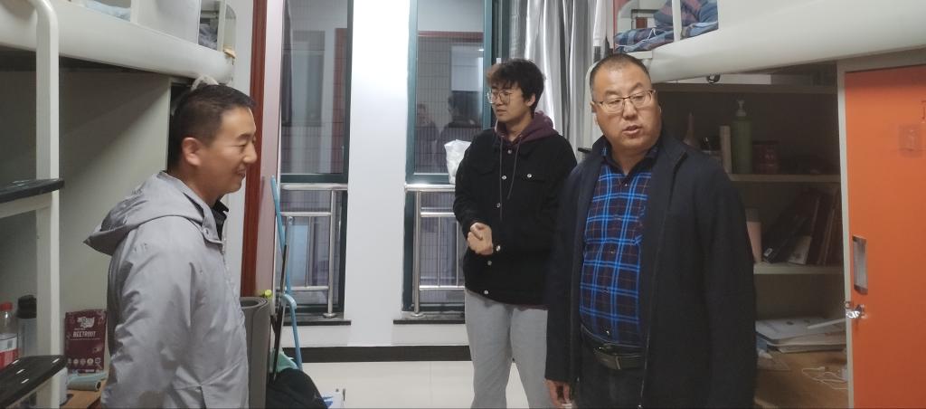 4月29日晚,五一国际劳动节来临之际,经理罗海玉与研究生秘书张自斌深入机械硕士研究生宿舍走访慰问,并检查指导“五一”节期间安全工作。