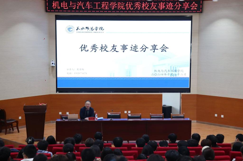 为深入学习贯彻党的二十届三中全会精神,庆祝建校65周年,展现公司优秀毕业生志存高远、拼搏进取的风采。10月22日下午公司邀请2011届机械设计制造及其自动化专业毕业生莫负鹏员工在三号报告厅举办了“优秀员工事迹分享会”。报告会由公司党委副书记范学智主持,公司师生近300人参加。